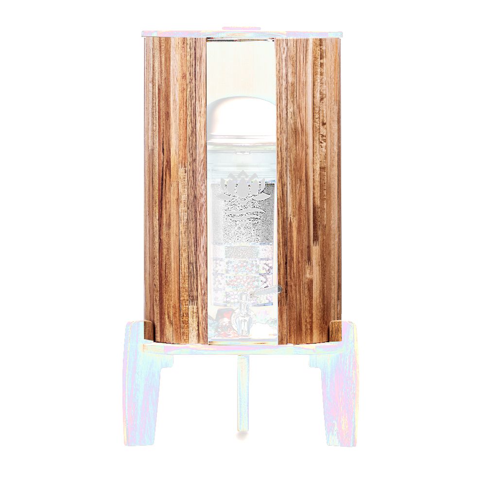 Der Lichtschutz aus Akazie schützt den Wasserfilter vor unerwünschter Algenbildung und macht die Aufstellung auch direkt neben einem Fenster möglich.